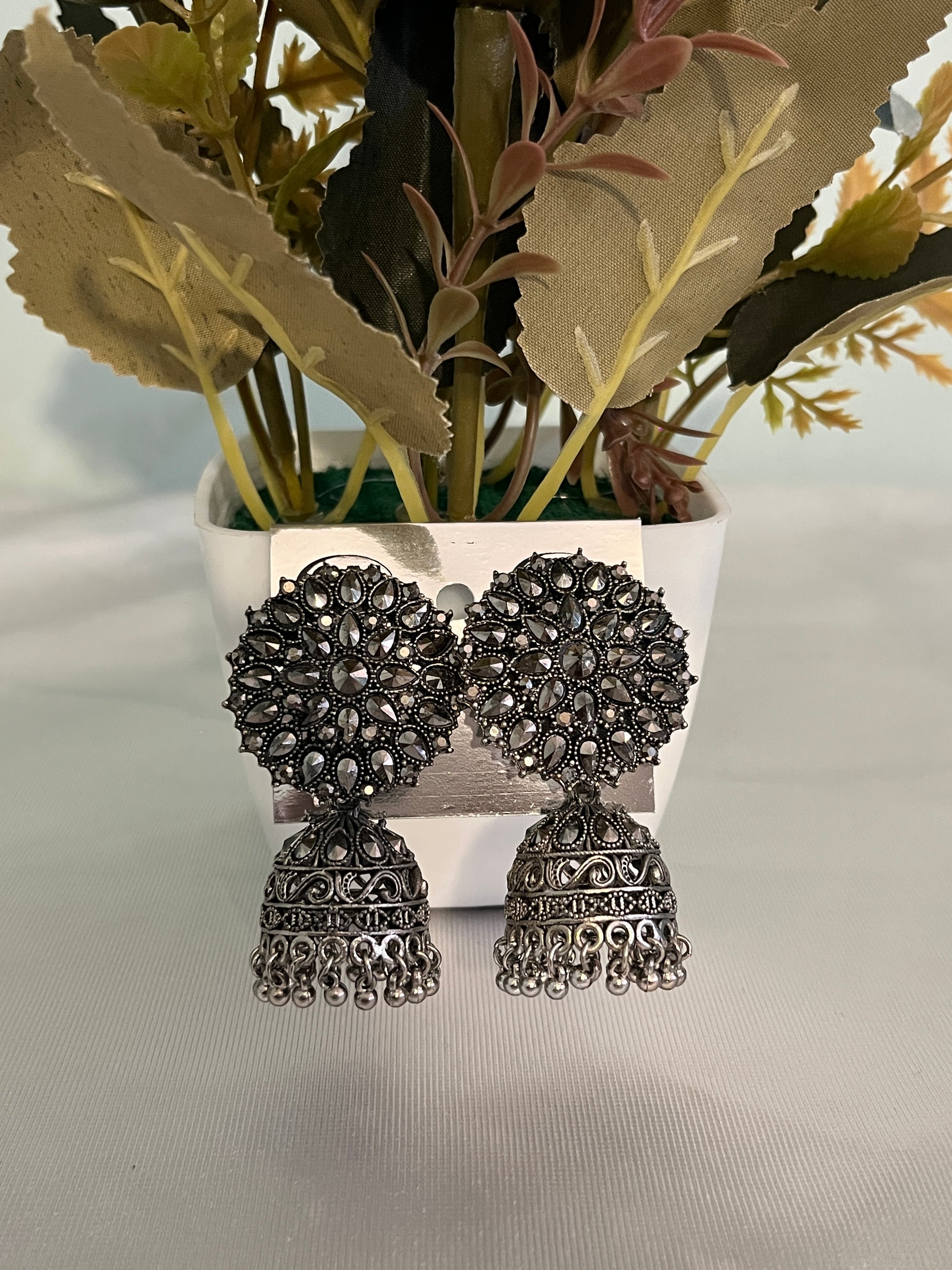 Complete your ethnic look with our stunning oxidised jhumkas — simple, stylish, and always in trend!